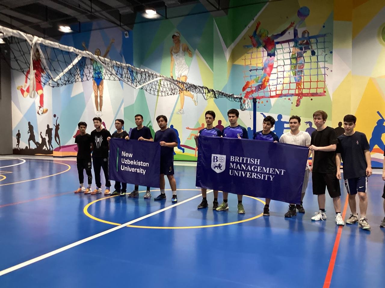 A friendly Basketball match between New Uzbekistan University and British Management University took place. The game was intense with each time showing what they got, with crazy lay-ups and clean 3-pointers.